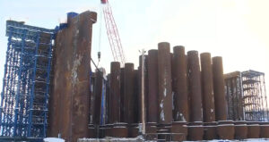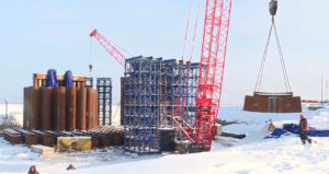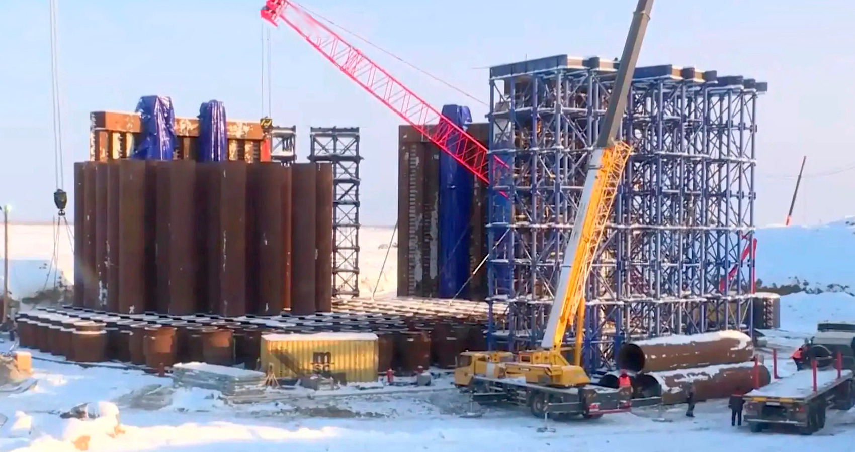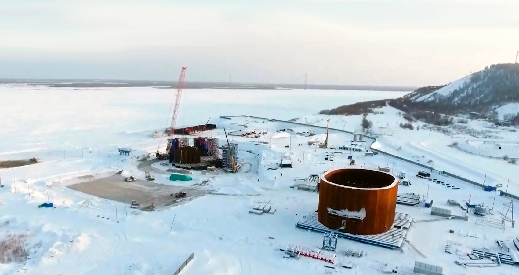 На площадке строительства Ленского моста ведётся подготовка к спуску первого готового коффердама. Для этого сооружается специальный слип, готовность которого составляет 80%. Транспортировка многотонной конструкции на роликах с использованием лебедок запланирована на март.
